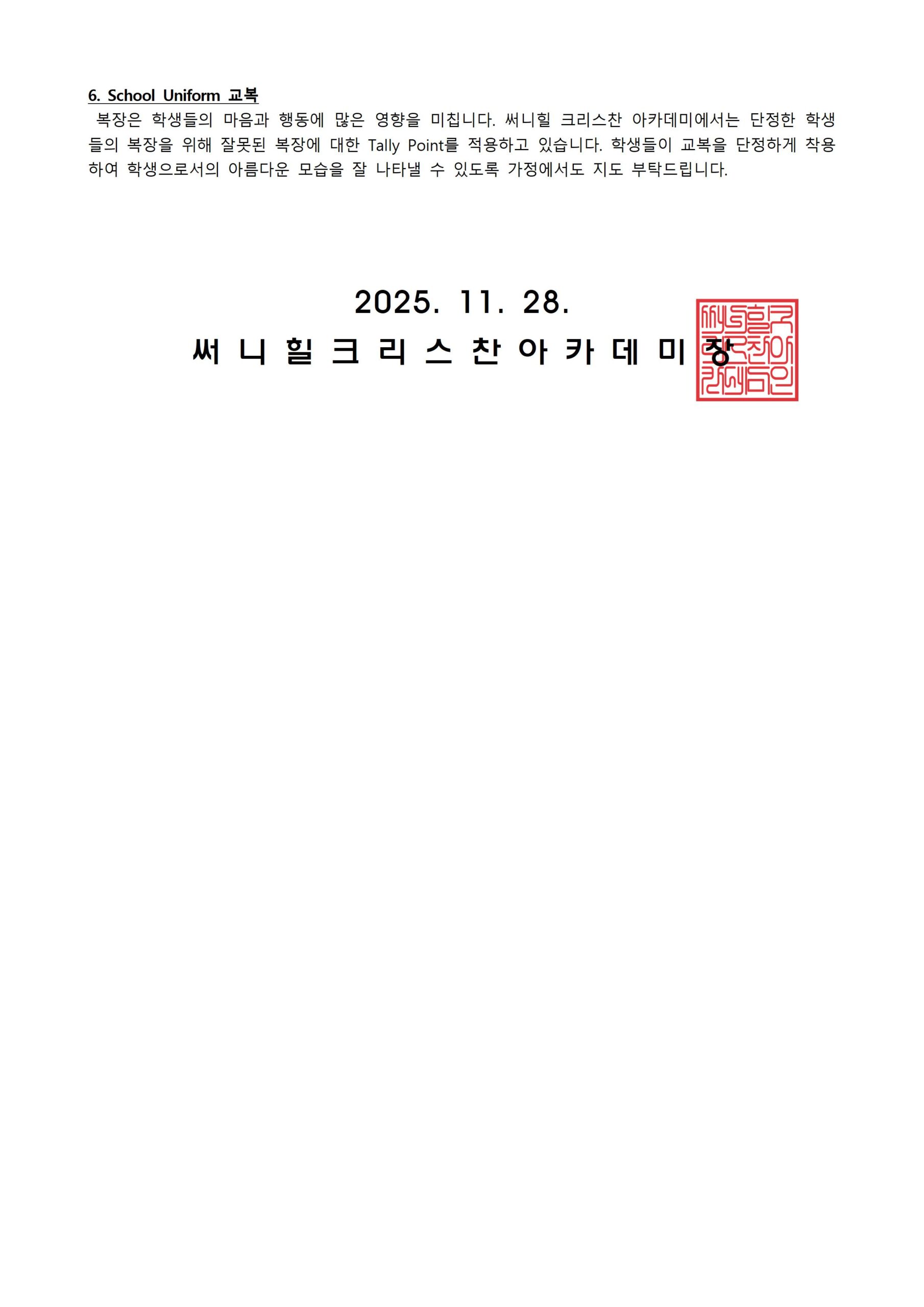 November 28, School News 가정통신문