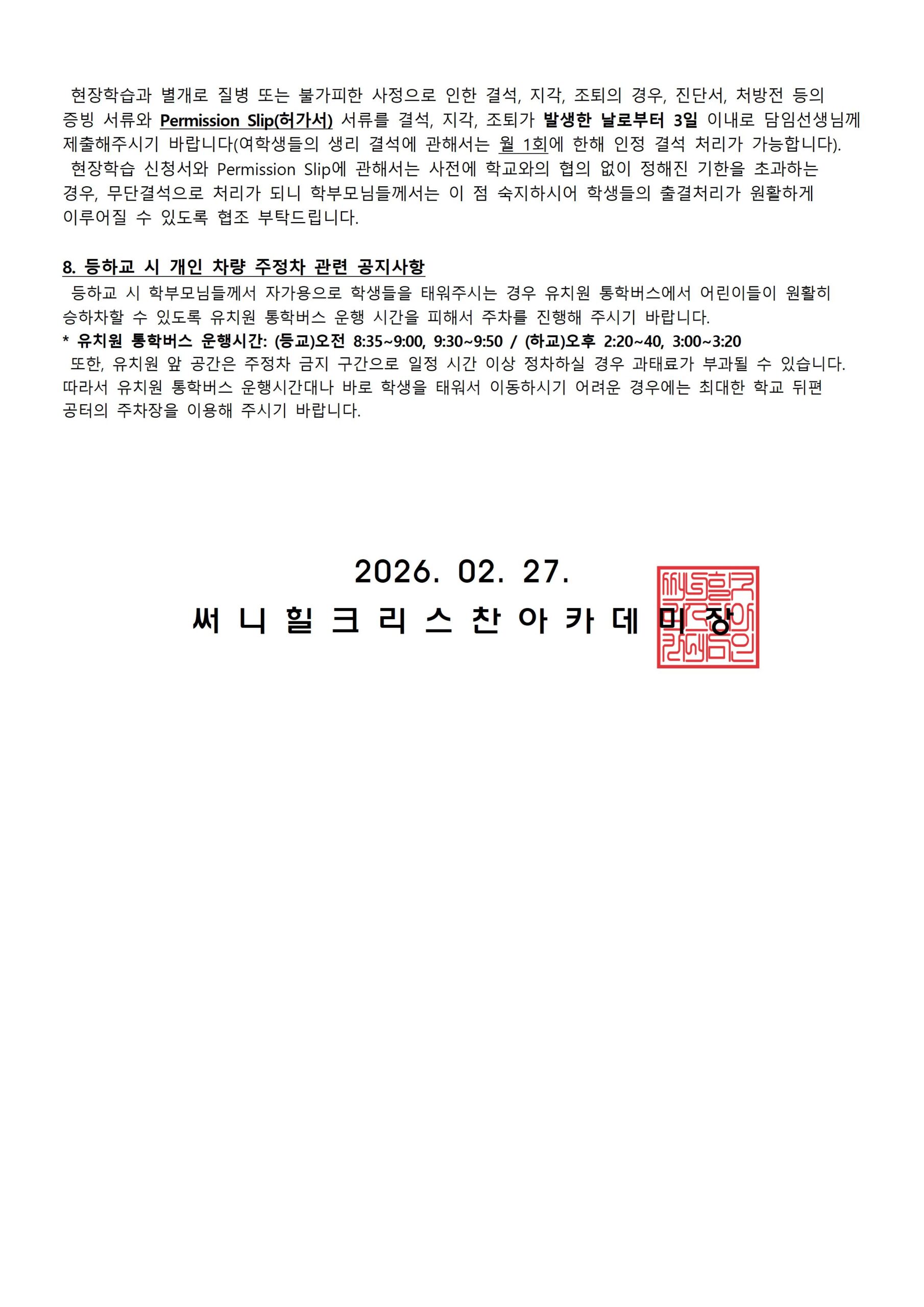 February 27, School News 가정통신문